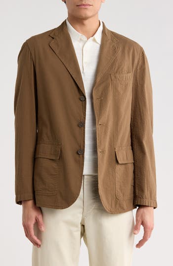 Lightweight cotton seersucker brings summery style to this classic blazer that works in the office, on weekends and beyond.