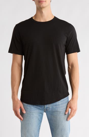Lightweight cotton fabric brings breathable comfort to this crewneck T-finished with a curved hem.