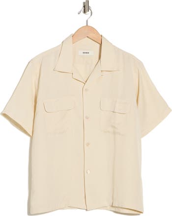 A relaxed, drapey silhouette is facilitated by a lightweight, linen-infused fabric that promises to keep you cool all weekend long when you wear this easygoing camp shirt. Patch pockets at the chest further the utility-inspired vibes.