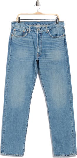 Show off cool vintage-inspired style in these button-fly straight-leg jeans cut from perfectly faded cotton-blend denim with a hint of stretch.