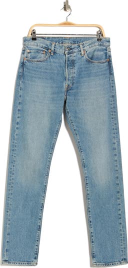 A slim fit lends throwback appeal to casual jeans made from low-stretch cotton denim for a durable fit with every wear.