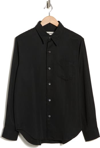 A relaxed, drapey silhouette is facilitated by a lightweight, linen-infused fabric that promises to keep you cool all weekend long when you wear this easygoing shirt.