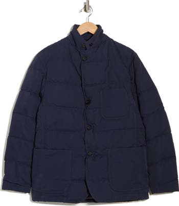 Layer on this channel-quilted puffer jacket constructed with a sporty stand collar and roomy patch pockets for utility-inspired style.