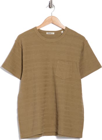A textured cotton weave brings a subtle design and lasting comfort to a casual crewneck T-shirt designed for everyday wear.