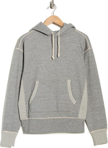 A colorblock design amplifies the sporty style of this pullover hoodie cut from soft cotton French terry.