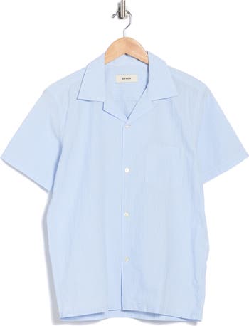 Build out your collection of casual classics with this faintly striped camp shirt cut from fresh, breathable cotton.