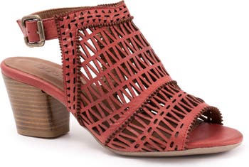 Unique geometric cutouts bring visual interest to the soft leather vamp of a sandal set on a stacked block heel to loft any look.