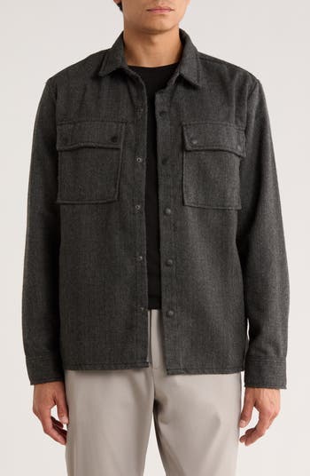 This lightweight yet toasty layer is crafted with a herringbone weave and features a snap-up front and chest patch pockets.
