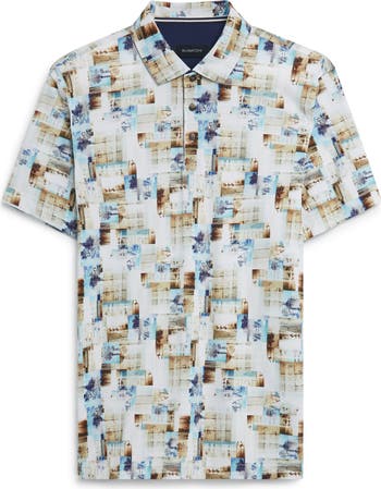 A digitally rendered photo-check print details this handsome polo crafted for polish and distinction from breathable cotton.
