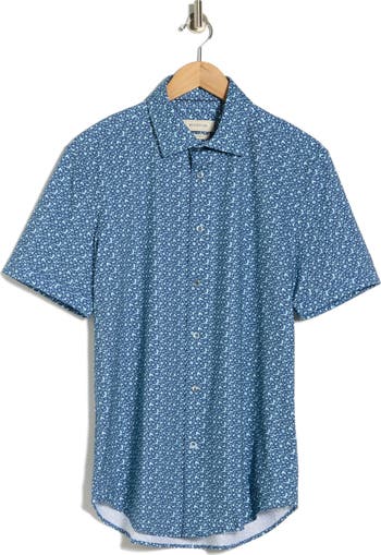A floral print meets all-day comfort in this short-sleeve button-up shirt cut from breathable cotton enhanced with stretch.