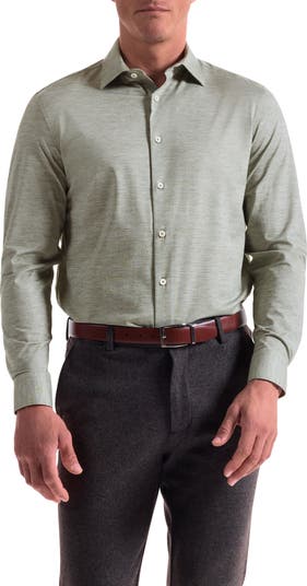 Space-dyed for cool dimension, this sport shirt is cut from breathable, eight-way-stretch OoohCotton that resists wrinkles to keep you polished and comfortable.