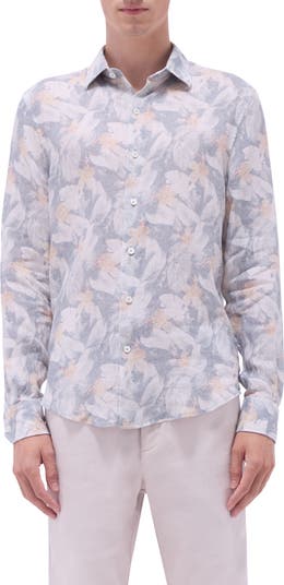 Effortlessly transition from office hours to happy hour in a long-sleeve button-up designed with a clean French placket, mother-of-pearl buttons and a cool floral print.
