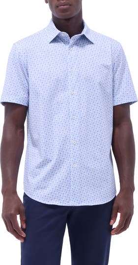 • Bugatchi Chevron Short Sleeve Knit Button-Up Shirt