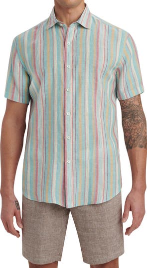 Ready to take on the heat and humidity and still look dapper is this striped sport shirt made from breathable linen and styled with a shaped fit.