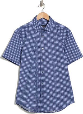 This stretch-cotton button-up shirt delivers laid-back appeal with its easy fit and polka-dot print.