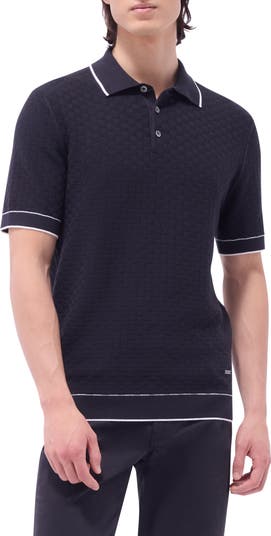 This simple yet sophisticated polo sweater is knit from a comfortable cotton blend and easily carries you from the workweek into the weekend.