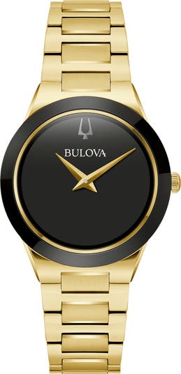 Show off polished style with this minimalist bracelet-strap watch featuring an index-free dials with precise two-hand movement.