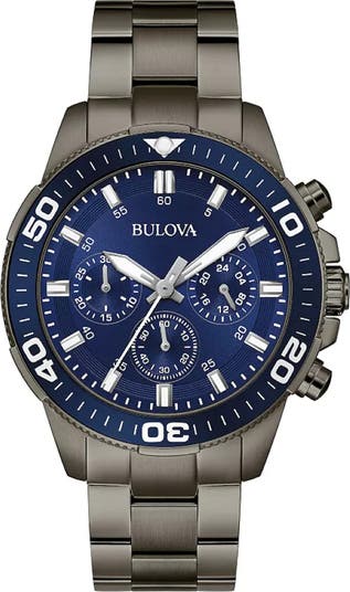 Other features: Water resistant to 10 ATM (100 meters); 60-minute unidirectional rotating bezel; screw-down caseback .