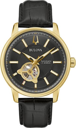 Other features: Skeleton dial; screw-in/screw-down caseback and crown.