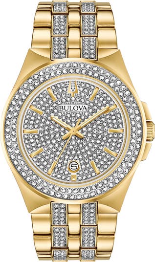 This sparkling accessory set will crave the spotlight with crystals upon the dial and bracelet of the watch and coordinating dog-tag necklace.