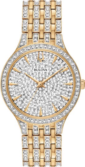 A classic design brings timeless elegance to this crystal-embellished bracelet watch that's an essential for everyday wear.