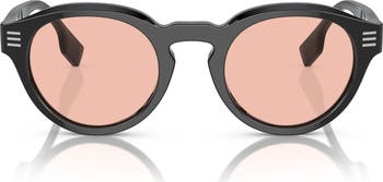 These prescription-compatible sunglasses crafted in Italy feature a classic round silhouette and demure logos at each temple.