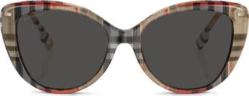 Textured temples with distinctive Burberry checks add modern flare to these Italian-made cat-eye sunglasses styled with full-coverage UV-protecting lenses.