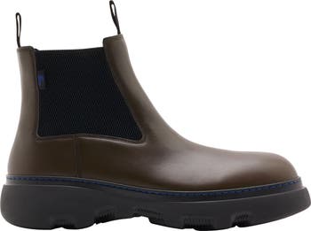 A Burberry-branded sole is kept practical with robust tread on this Italian-crafted Chelsea boot complete with signature blue topstitching.