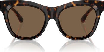A subtle cat-eye design elevates the silhouette of these UV-shielding sunglasses with metal logo branding at each temple.