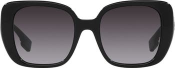 A signature Burberry design details the temples of square sunglasses that make a modern statement.