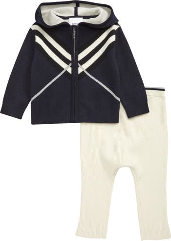 A perfect gift for a budding Burberry fan, this adorable set includes a hooded full-zip jacket and ribbed pants made with supremely soft cashmere and cotton.