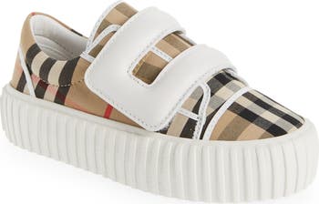 Signature Burberry checks make their mark on this sporty canvas sneaker set in a chunky ridged cupsole with a logo-embellished heel.