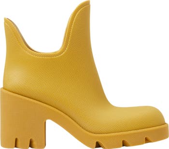 Give your rainy day look of pop of pizazz with this runway-featured ankle boot with embossed diamond texture and a chunky lug sole and block heel.