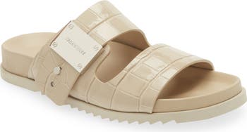 Burberry borrows its own Olympia hardware to add standout gleam to this Italian-crafted sandal shaped from croc-embossed leather and set on a sawtooth sole.