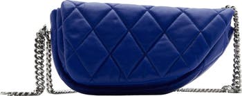 Crafted in Italy from diamond-quilted lambskin, this asymmetric crossbody is deftly detailed with shield-shaped hardware and an adjustable curb-chain strap.