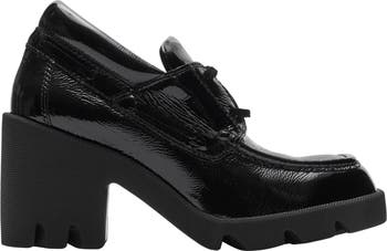 Fashioned from richly crinkled leather, this robust derby features a bold block heel and a deeply grooved sole enlivened with a bright-blue Burberry logo.