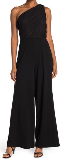 The contemporary one-shoulder silhouette of this dreamy wide leg jumpsuit makes it a runway-ready wardrobe essential.