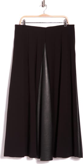 Elevate your weekend ensembles with this mixed-media skirt made from scuba crepe and faux leather.