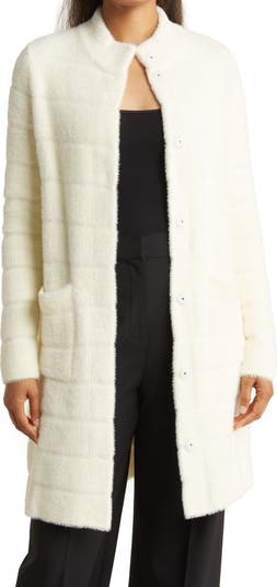 Luxe quilting textures this faux-fur jacket flanked by nifty patch pockets.