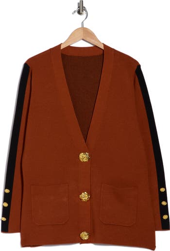 Polished buttons define the sleeves and placket of a cuddly cardigan that brings a perfect layer of warmth to everyday looks.
