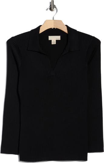 A Johnny collar channels the preppy aesthetic on a fitted top that's knit in allover ribbing.