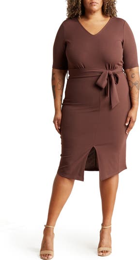 A waist-accentuating belt defines your figure in a stem-baring dress featured in a solid hue for easy, everyday wear.