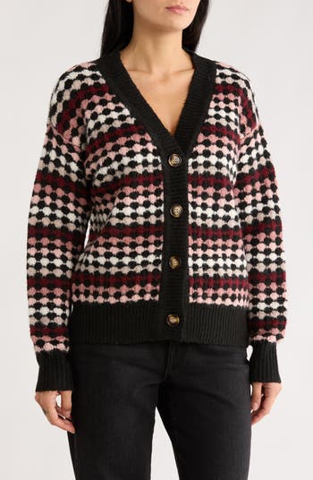 A relaxed fit adds to the cozy charm of this textured cardigan knit from wool-kissed yarns for a luxe feel.