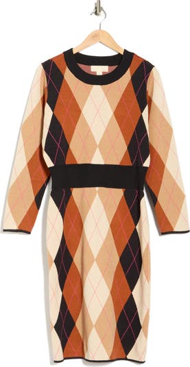 An argyle pattern brings classy style to this long-sleeve sweater-dress made from a soft double knit in a midi-length silhouette.