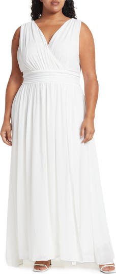 A flowy skirt and pleated bodice add graceful charm to this sleeveless maxi dress with an alluring V-neck.