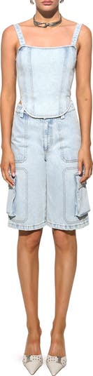 Contrast topstitching highlights the pocket-packed design of these utility-inspired cargo shorts cut from non-stretch denim.