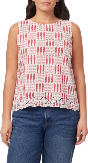 A pattern of sardines lends warm-weather charm to a signature shell cut from pure, breathable cotton.