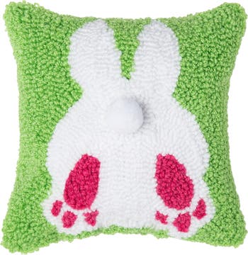 Add a pop of Easter charm to your space with this accent pillow featuring a hooked-yarn Easter bunny design with a pompom tail.