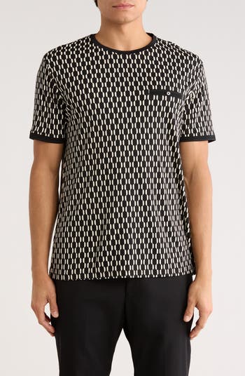 A geometric pattern gives a pop of visual interest to this knit T-shirt finished with a chest button-welt pocket.