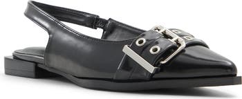 A polished buckle gives a touch of shine to this pointy-toe flat that's built with plush memory foam cushioning to up the support of your every stride.